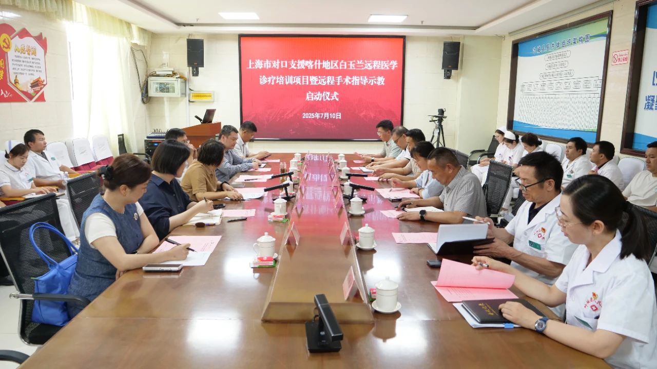 上海市對口支援喀什地區白玉蘭遠程醫學診療培訓項目暨遠程手術指導示教活動啟動儀式現場。葉城縣融媒體中心記者 劉國雄 攝