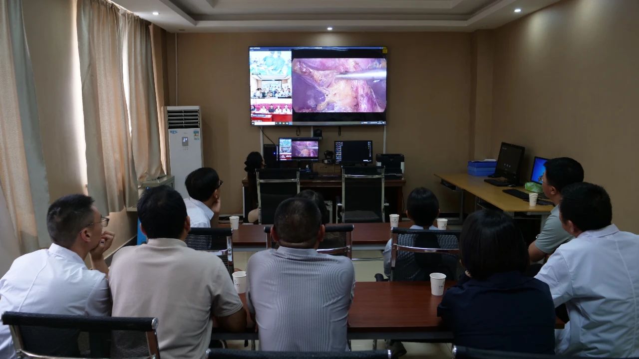 上海寶山區中西醫結合醫院胃腸外科專家通過低延遲音視頻系統,對葉城縣人民醫院普外科團隊的首例腔鏡手術進行遠程實時指導。葉城縣融媒體中心記者 劉國雄 攝
