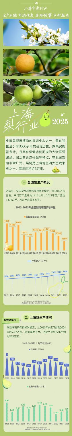 奉賢的莊行蜜梨、浦東的南匯翠冠梨……這些扎根滬上的品種梨,是上海人舌尖上的季節饋贈。日前,上海市農產品(瓜果)全產業鏈市場信息監測預警分析團隊公布了《上海市梨行業2025年全產業鏈市場信息監測預警分析報告》,一起來看看市農業農村委的介紹吧→