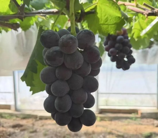 由上海市農業科學院林木果樹研究所選育的本土化葡萄新品種,果皮紫紅色,果粒大,果肉肥厚,有獨特的酒香味,風味濃郁,上海地區設施促成栽培7月上旬成熟。