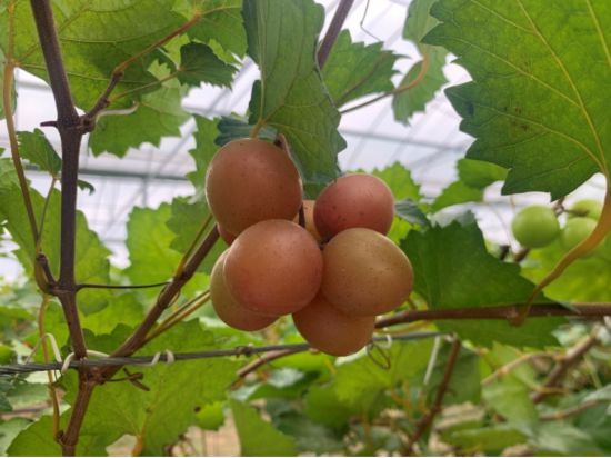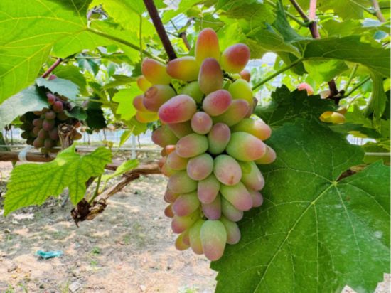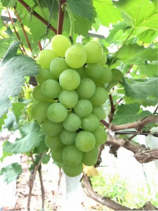 果粒尖端紫紅色,底部綠色,果汁多,酸甜可口,茉莉花香味濃郁,糖度高,上海地區促成栽培6月中旬成熟,采摘時滿園飄香。