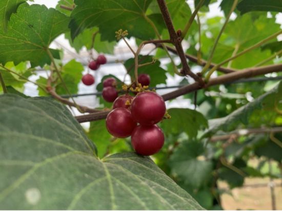 還有一種圓葉葡萄,外觀和口感與我們常見的葡萄都不太一樣。圓葉葡萄果穗比常規的葡萄小得多,但果實顏色多樣,有淺綠色、古銅色、紅色、紫色、黑色等,果皮厚,果肉軟,具有濃郁的麝香味,風味特殊,既可鮮食,又可加工成果汁、釀酒等。圓葉葡萄營養價值高,多酚類及白藜蘆醇含量豐富,也是唯一富含鞣花酸的葡萄種類,在上海地區7月下旬至10月中旬成熟。