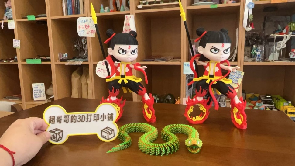 “創客盒”中擺放的哪吒3D打印模型 孫佳雯攝