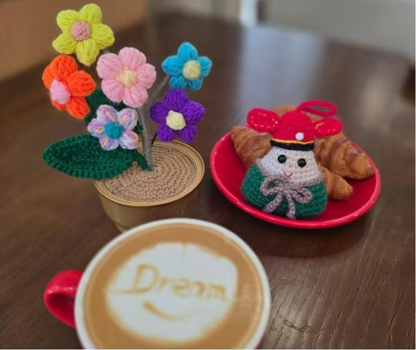 手作咖啡和居民自制的編織物。孫佳雯攝
