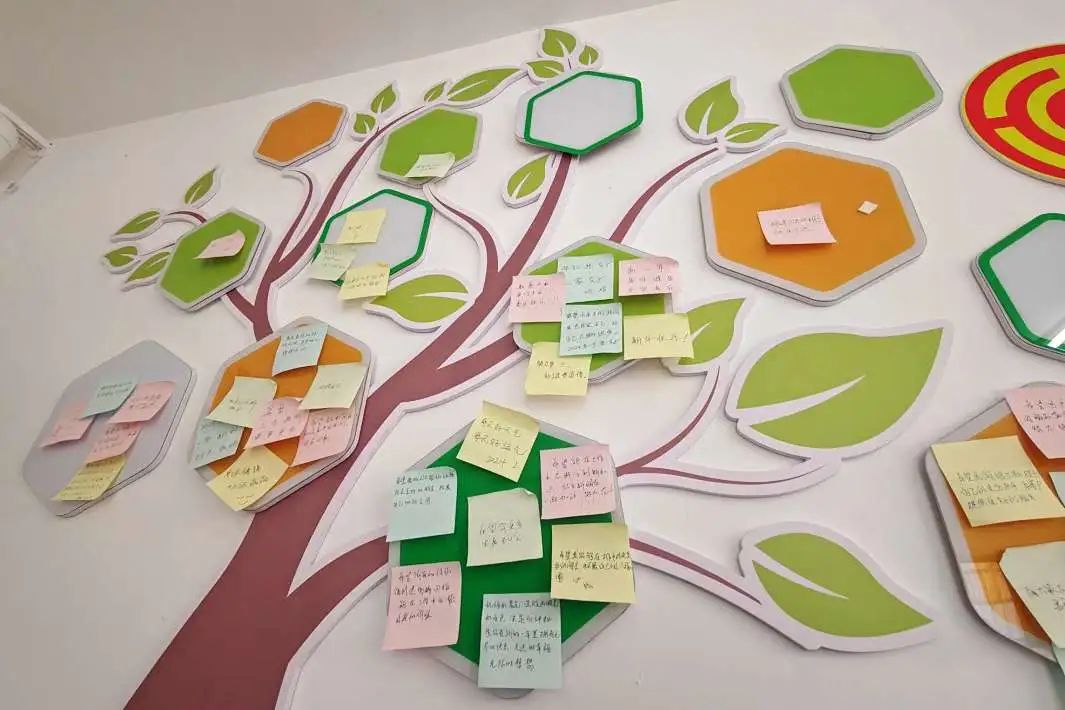 驛站里,空調全天開放,還備著飲用水、干凈毛巾、桌椅。一面便利貼墻上,貼滿了騎手們寫下的心愿和感謝。一杯一盞,細節里都是社區的溫情。