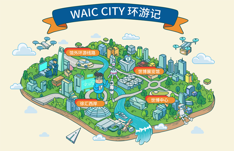 走出展館,來到世博展覽館北廣場的城市服務中環,可以體驗智慧無人駕駛,看低空無人機編隊秀,感受一把空地一體化出行的未來感。再到產業生態外環,通過WAIC CITY WALK,把浦東、徐匯、楊浦、黃浦等六大城區串起來,上海的城市街區變成開放展廳。