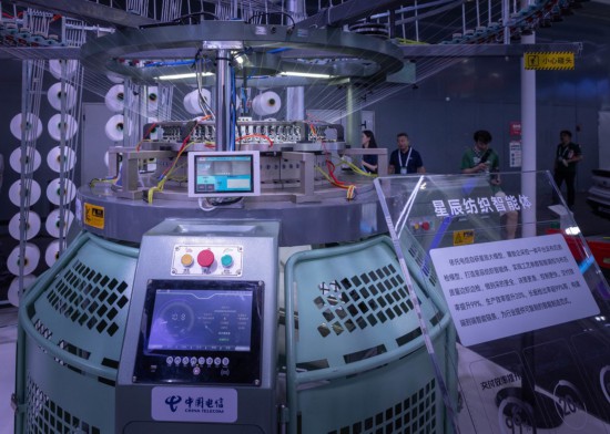 中國電信展臺展示的一臺工業織布設備上,星辰紡織智能體實時參與紡織生產全流程,實現“邊織邊檢”,秒速“糾錯”,準時交付率高達99%,生產效率提升20%,大大提升了生產效率。
