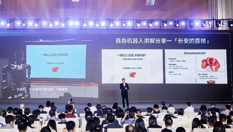 “悟能”用PPT現場講解“長安的荔枝”。商湯科技供圖