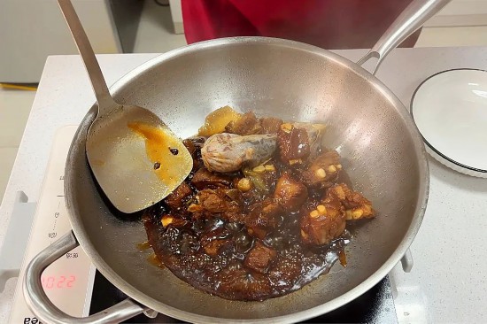 4.煮沸后轉文火慢燉,燉至排骨軟爛。