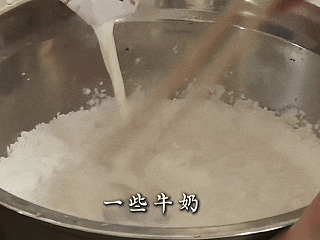 用牛奶將糯米粉拌好后備用。