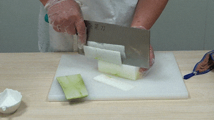 1.冬瓜去皮去瓤,切成薄片備用。