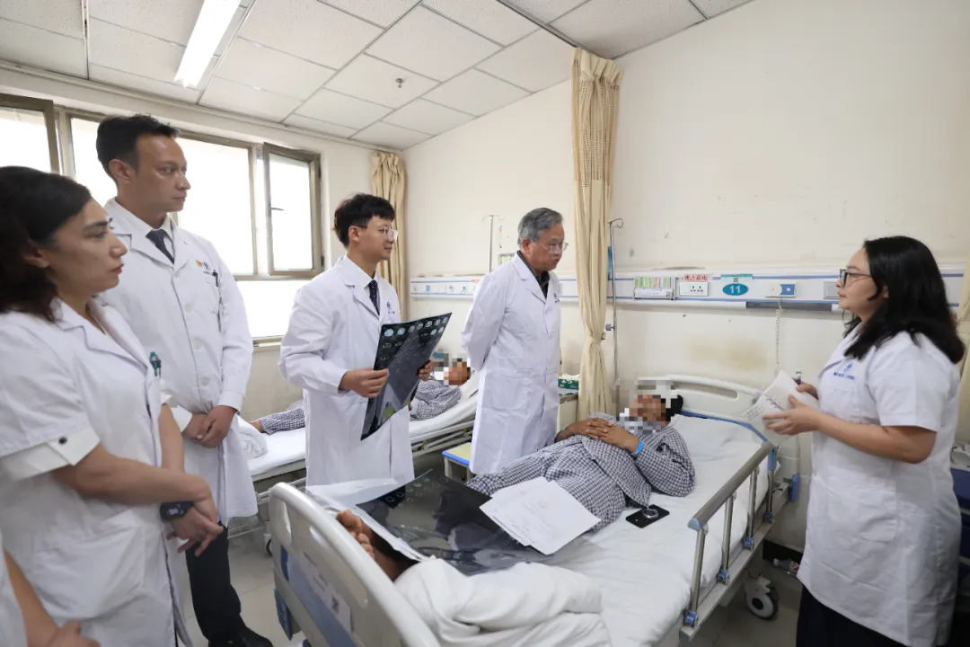 中國工程院院士、國家口腔醫學中心主任張志愿教授率先抵達喀什二院,深入醫院口腔診療中心頜面外科病區進行教學查房。面對復雜病例,張院士一絲不茍地查看患者、分析影像資料,結合自身豐富的臨床經驗,對診療方案給予具體、細致、權威的指導。查房過程成為一場生動的現場教學課,張院士耐心解答年輕醫生提問,無私分享診療思路與前沿知識,為邊疆一線醫護人員提供了極其寶貴的學習提升機會,充分體現了上海專家“傳幫帶”的務實作風。