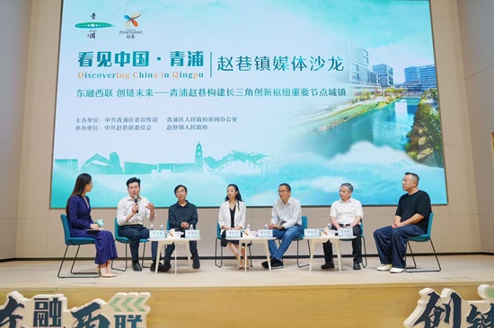 當天,首站走進了青浦區趙巷鎮。德國籍城市推薦官Ben帶來第一期推介視頻《愛上趙巷的N個理由》。媒體沙龍交流活動上,趙巷鎮鎮長沈竹林,中國科學院院士樊春海,長三角趙巷新興產業經濟發展(上海)有限公司總經理蔡喆玉,湯恩智能科技(上海)有限公司副總經理曹衛濤,上海鑫直機電工程有限公司總經理瞿陸輝,和睦村前院后院民宿主理人王守偉等嘉賓齊聚一堂,圍繞“東融西聯 創鏈未來”主題,共話品質趙巷發展。