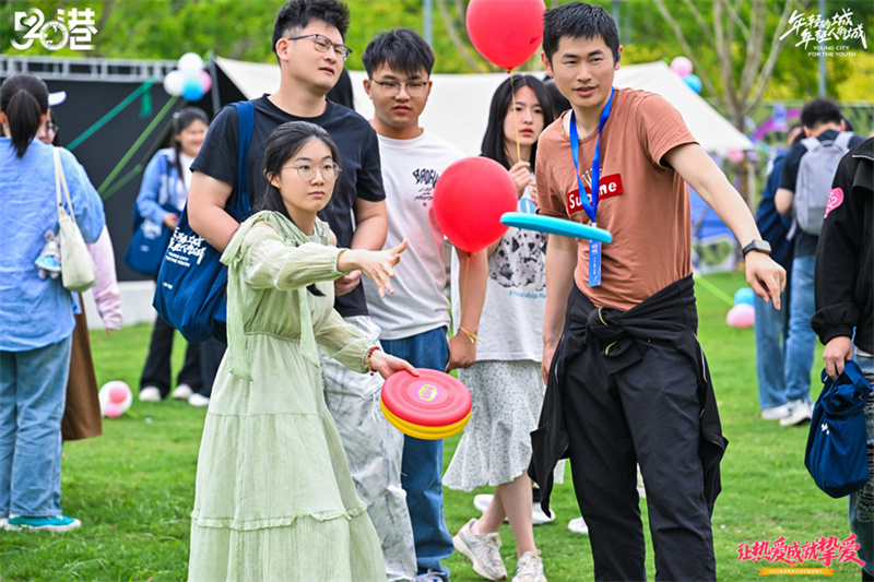 莫比烏斯公園,參加交友嘉年華的年輕人在玩互動游戲?;顒又鬓k方供圖