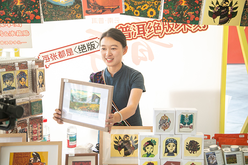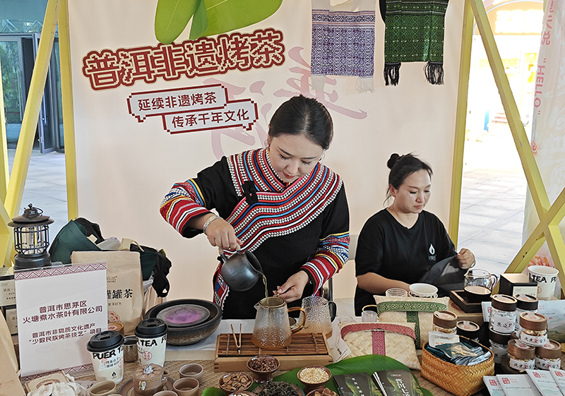 同時,少數民族歌舞展演輪番上演,悠揚的歌聲與靈動的舞姿展現普洱民族風情。在“普品入滬”展銷區,集中展銷普洱茶、咖啡、七彩花生等高原特色農產品,以及佤族織錦、手工藝品、文旅產品等系列文創產品,既滿足多樣化消費需求,又實現文化展示與產品推廣的雙向聯動。