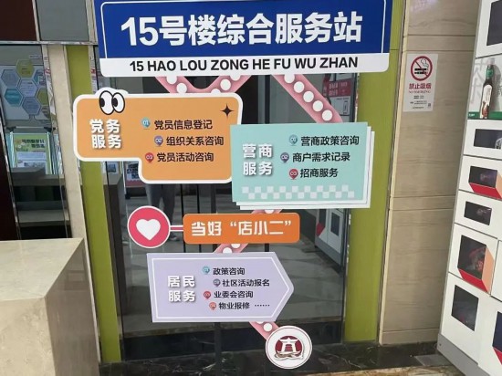 有了凝聚力,天匯樓宇黨委趁熱打鐵,搭建“相約星期六”議事平臺,推動開展“樓事樓議”,提升樓組的自治力量。在黨組織的引領下,15號樓組代表們通過議事平臺成立了自治小組,一起商量著制定了樓內的自治規約,并將“天天相見,心心相匯”作為樓組建設的主題,開展一系列自治活動。例如針對樓組大廳閑置吧臺臟亂的問題,住戶們提出將吧臺改造為服務站,通過眾籌的形式將吧臺區域裝點一新,由黨員和治理小組成員輪流值班,為樓內的商戶、業主和租戶提供日常所需的綜合服務,將“天天相見,心心相匯”的主題落實在樓組治理的點點滴滴。