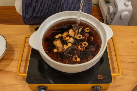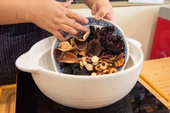 1.將甘草、烏梅、洛神花、山楂、陳皮、桑葚干倒入鍋中;