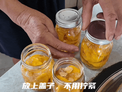 4.按個人口味往罐子中放入適量冰糖,依次加蓋,但不用擰緊。
