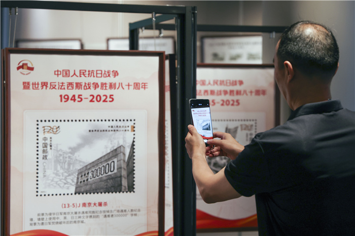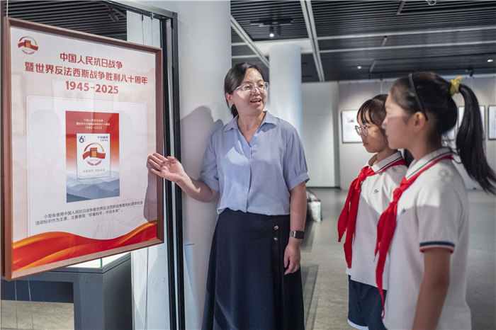 為配合此次郵票首發活動,《銘記歷史·珍愛和平——紀念中國人民抗日戰爭暨世界反法西斯戰爭勝利80周年》主題郵展也于同日在上海四行倉庫抗戰紀念館三樓臨展廳開幕。