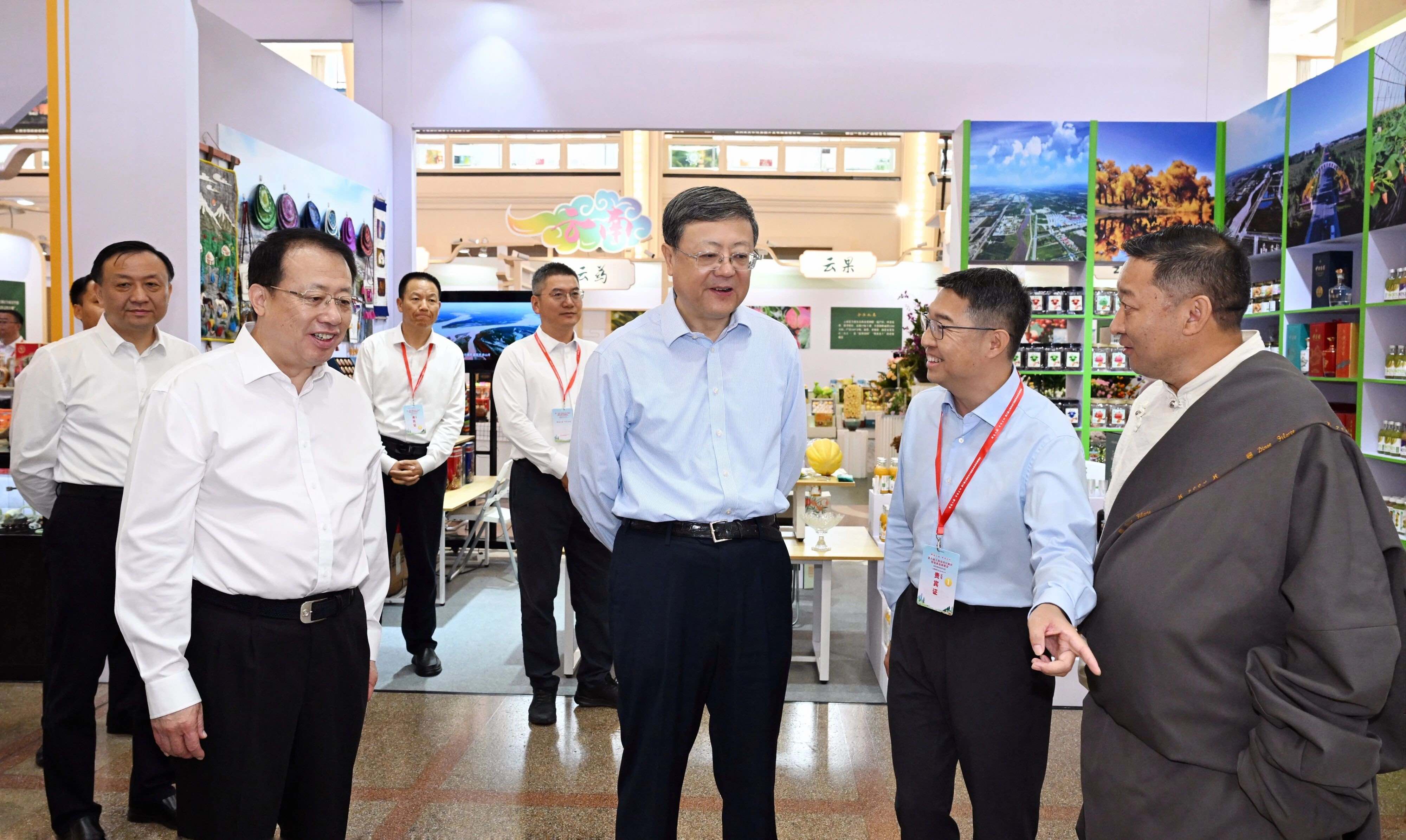 以“跨越山海、申情樂購”為主題的第八屆上海市對口地區特色商品展銷會,今天(9月5日)在上海展覽中心開幕。上午,市委書記陳吉寧,市委副書記、市長龔正來到展銷會現場,察看對口地區特色商品,了解消費幫扶工作推進情況。陳吉寧說,要深入貫徹落實習近平總書記關于深化東西部協作和對口支援的重要指示精神,充分發揮上海大市場、大平臺、大流通優勢,攜手對口地區謀劃好“土特產”的大文章,把產業協作做深入、把消費幫扶做扎實、把特色品牌打造好,更好服務構建統一大市場,助力對口地區持續鞏固拓展脫貧攻堅成果同鄉村振興有效銜接,讓群眾有更多獲得感、幸福感、安全感。