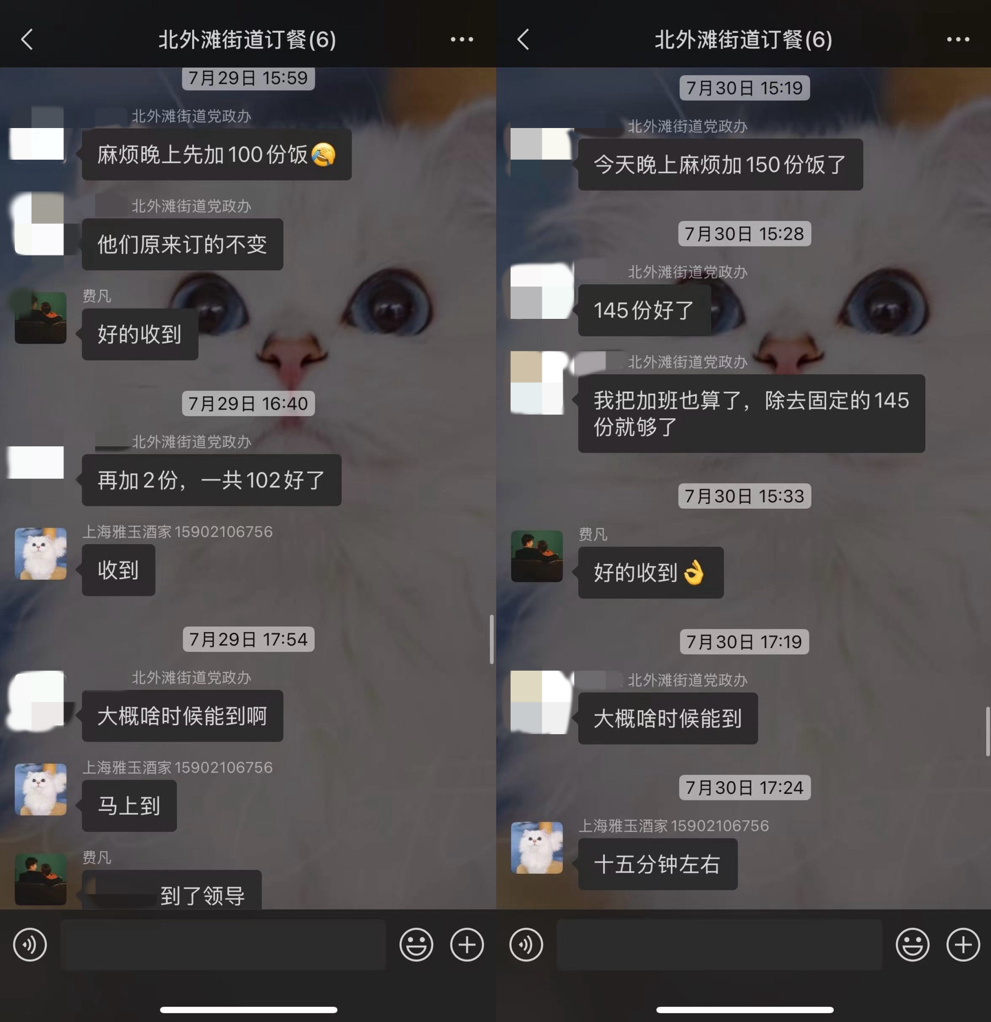雅玉酒家與街道之間訂餐群的聊天記錄 雅玉酒家供圖