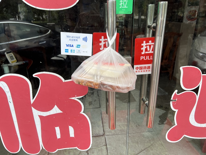 小高掛在門把手上的盒飯 人民網記者沐一帆攝