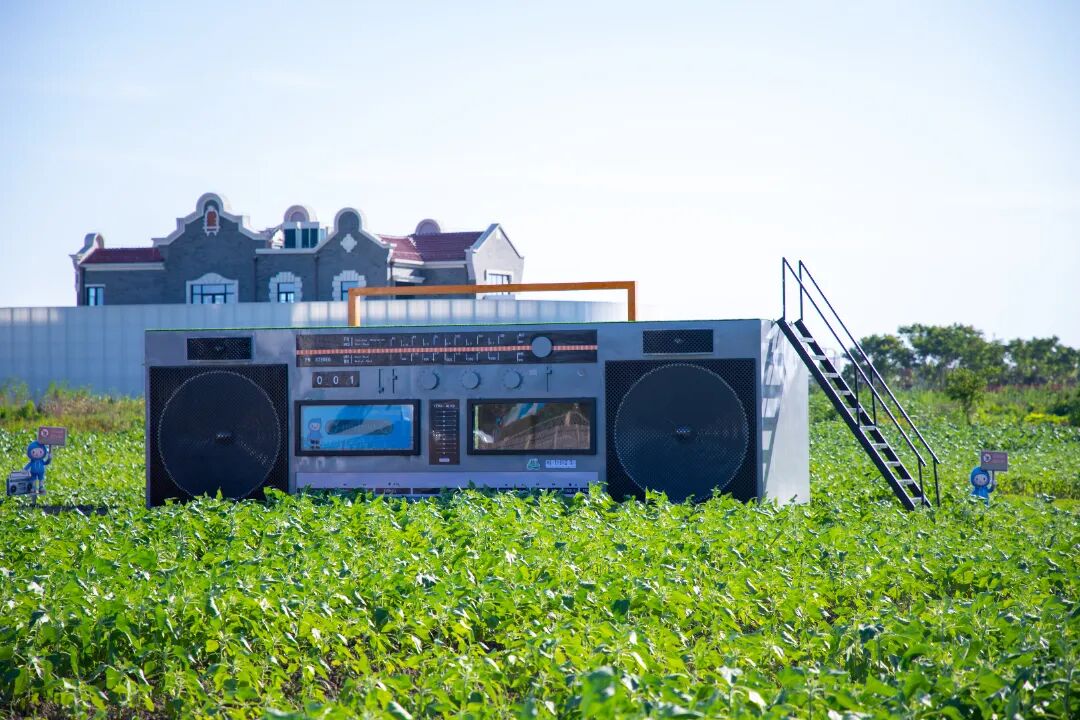 一座?巨型復古收音機裝置?矗立于戶外綠意盎然的場地,表面布滿模擬收音機的旋鈕、刻度盤與顯示屏,細節精致且充滿懷舊感。巨型收音機裝置十分“吸睛”,可作為獨特背景,輕松拍出“復古潮玩風”照片,兼具“田園野趣”與“復古藝術感”!