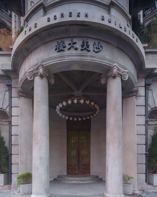 沙美大樓融合了新古典主義骨架與巴洛克裝飾細節,是折衷主義的代表作。主體為五層鋼筋混凝土結構,局部六層,立面石材精致、比例典雅,入口處半圓拱門內藏古典柱廊,上方有斷裂山花與曲線裝飾,莊重中透著靈動。設計強調功能分區,底層獨立于上層流線,公寓套房配備獨立衛浴、廚房等設施,體現當時高端居住需求。