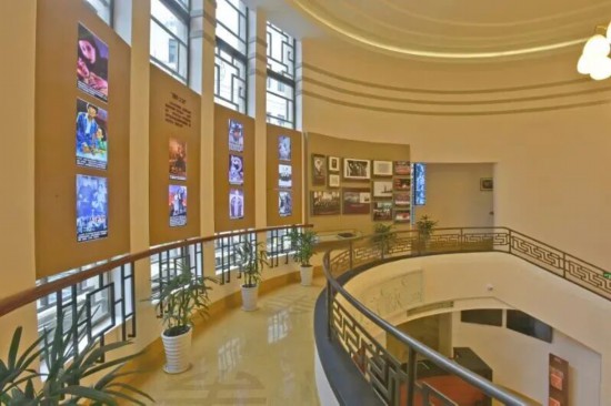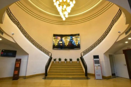 黃浦劇場(原金城大戲院)建成于1934年,由中國第一代杰出建筑師童寯設計,體現了現代主義建筑理念。在兼顧實用功能的同時,童寯極力追求造型的簡約與美感。建筑主立面以光潔的米白色墻面為主,僅通過橫向灰色窗框線條勾勒輪廓,摒棄繁復的線腳裝飾,呈現出洗練而優雅的視覺效果。室內空間多運用弧形與圓形元素,以金色作為主色調,并在細部裝飾中融入中國傳統意象,體現出中西交融、統一和諧的獨特風格。