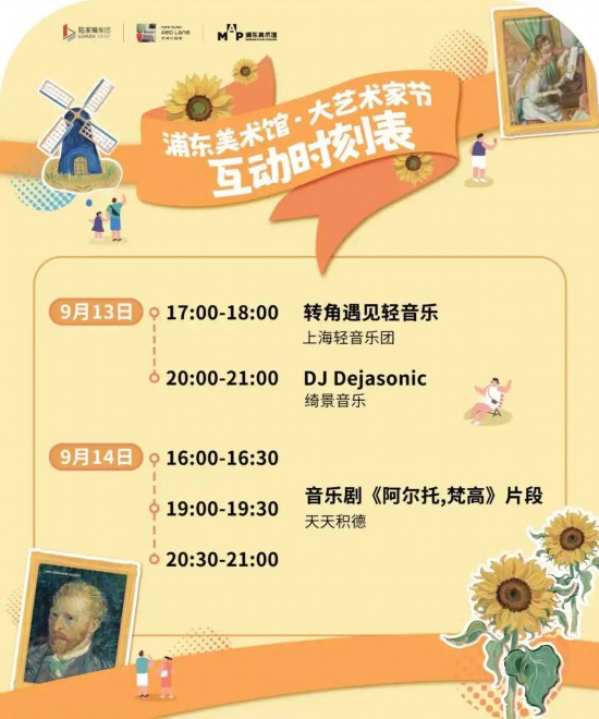 白天起,大藝術家節集市、演出、互動體驗輪番登場,一路開放至夜間21點。星空下,巨型向日葵與名畫裝置交相輝映,浪漫氛圍與都市煙火氣并存,化為秋夜限定的藝術之境。