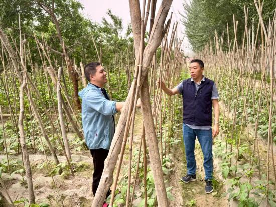 記者走訪烏達力克的時候看到,這里的豇豆是每家每戶各自種植的,一般與巴旦木套種,與上海的現代化農業并不一樣。如何將單打獨斗的“小農種植”轉變為“標準化、高品質”的現代農業?援疆專技人才、烏達力克鎮農業(畜牧業)發展服務中心副主任文德亮,協調當地農業技術人員和種植戶,依托申佳農科技術團隊,系統傳授水肥管理、病蟲害識別與綠色防控、科學采收等關鍵技術,變“經驗種植”為“科學種植”,著力培養一批掌握標準化生產技術的本地新農人,夯實體系根基。