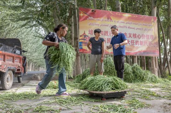 農歷閏六月下旬,記者采訪時,在16村的一個收購點遇到一個16歲的維吾爾族男孩,他一邊搬著鄉親們送來的豇豆,一邊笑嘻嘻地說:“我們的豇豆又直又飽滿,真的要感謝上海援疆啊?!蹦且豢?,2024年7月的一個插曲閃回:朱文強與一名遠方的80后父親配型成功,他趕回上海捐獻造血干細胞,分指揮部的“小伙伴們”立刻接手他的工作,救人與救豇豆兩不誤,我們的援疆團隊打了一個大勝仗。