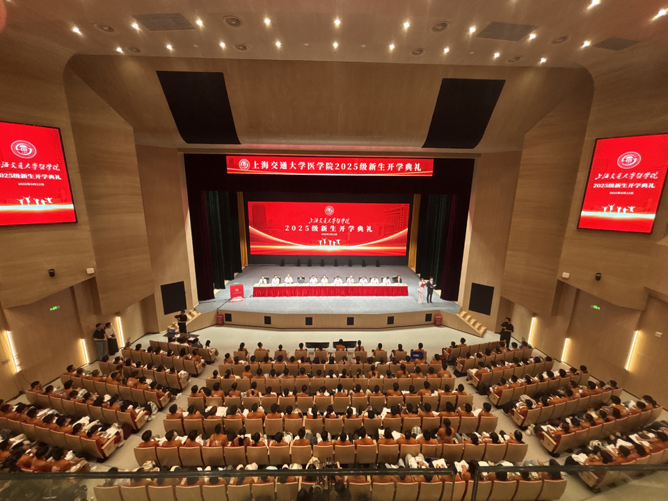 新校區啟用當日,上海交通大學醫學院浦東校區迎來了首批2025級新生。隨著雄壯的國歌聲音響起,神圣莊嚴的2025級新生開學典禮在浦東校區彤程大講堂隆重舉行。在醫學院黨政領導、教師代表的注視下,全體新生身穿統一著裝、精神抖擻,邁入會場,預示著他們立志獻身醫學事業,即將踏入“除人類之病痛、助健康之完美”偉大征程。