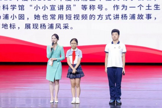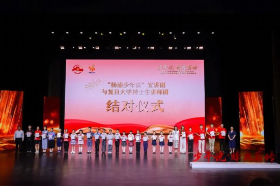 活動現場還舉行了新一屆“楊浦少年說”宣講團成員與復旦大學博士生講師團的結對儀式,宣講員獲頒講解牌、成長記錄手冊和證書,象征紅色基因代代相傳。