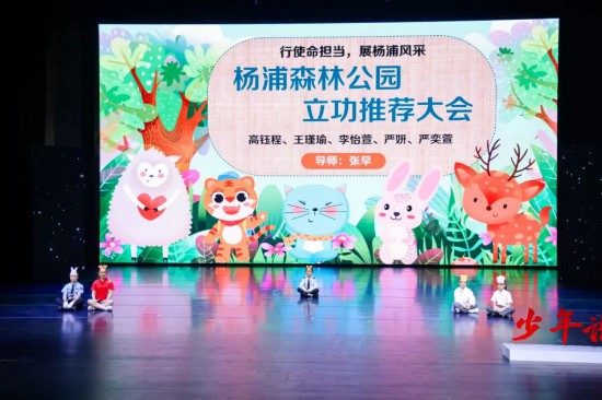 在“探紅色場館,溯歷史記憶”中,張歆奕、周悠然等五人帶來《穿越時空的國歌記憶》,引領觀眾重回烽火歲月,感受國歌中凝聚的民族魂;“講英雄故事,傳英雄精神”篇章里,任婉沁、王笑妍等五人演繹《永不褪色的名字》,致敬為國家獻身的英雄,讓跨越時空的精神力量震撼人心;“品經典讀物,做時代新人”部分,田璽冉、顧馨等五人呈現《課堂里的紅色接力》,王伊達同學一曲《長城謠》悲壯深情,叩擊心靈;在“行使命擔當,展楊浦風采”中,嚴妍、李怡萱等四人以《楊浦森林公園立功推薦大會》展示出少年特有的創意與報國情懷。