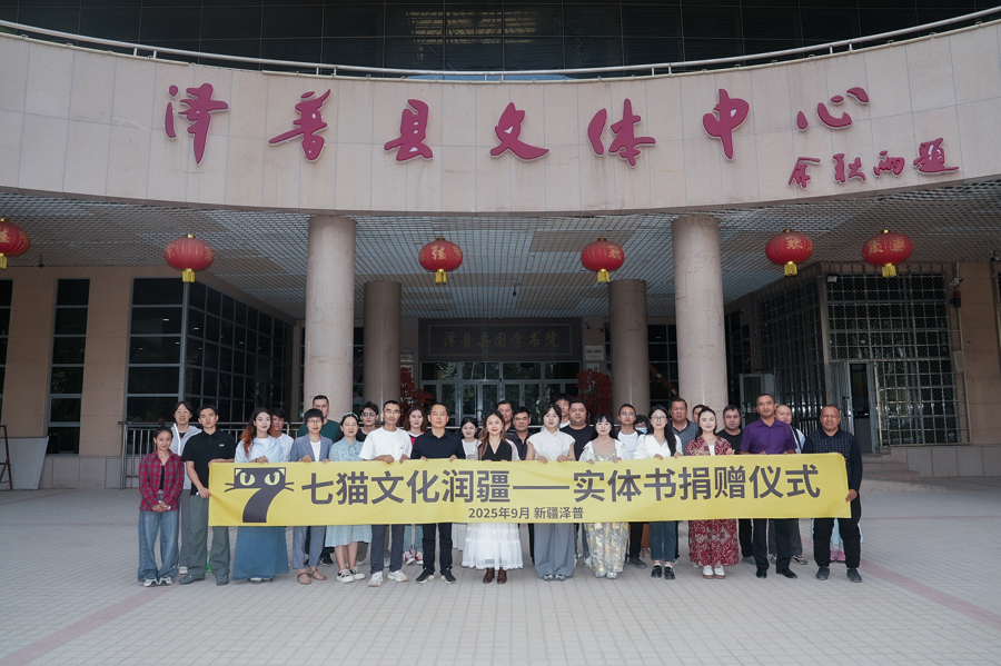 在古絲綢之路上的南道重鎮葉城縣,七貓向葉城縣昆侖國學書院、葉城縣圖書館捐贈圖書230余冊,包括《騰格里的記憶》《大國盾構夢》《月照新河》《尖鋒》等優秀現實題材作品和《中意你》《你是我的萬千璀璨》等優質網絡文學書籍。白馬出涼州、顧天璽、二喜作為作者代表,參與儀式。作家們對自己的作品被收入葉城縣國學書院深感榮幸,白馬出涼州說:“希望我們的作品能成為一扇窗戶、一座橋梁?!?/p>