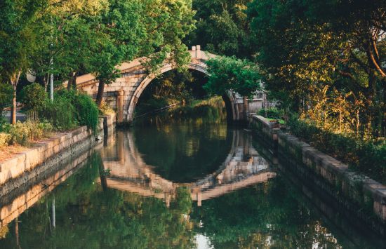 在放生橋上賞落日美景。晚上可夜游古鎮,或在春秋兩季觀看課植園實景《牡丹亭》、水樂堂等世界級大師演藝作品。