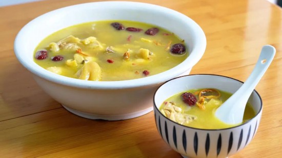 6.加入板栗、蟲草花、紅棗,繼續小火慢燉,最后放適量鹽調味,等板栗變得酥軟粉糯,再撒上一把枸杞即可