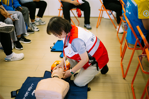 培訓區內,紅十字會的專業教官正在演示心肺復蘇?!鞍磯荷疃?厘米,頻率100-120次/分鐘...”教官抓著騎手們的手親自指導,“你們常年在路上跑,學會這些能救不少人?!?/p>