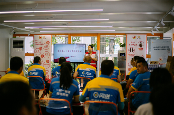 “閃送員群體不僅是城市的‘擺渡人’,更是奔跑在第一現場的城市響應人,成為突發意外現場的‘第一施救者’。閃送政府事務高級經理、閃送(上海)黨支部書記高蘭林介紹,閃送多年來持續聯合多地紅十字會進行急救培訓,在2021年專門成立了閃送紅十字愛心志愿服務隊,鼓勵閃送員在日常工作中行好事、做好人,運用所學急救知識及時伸出援手。