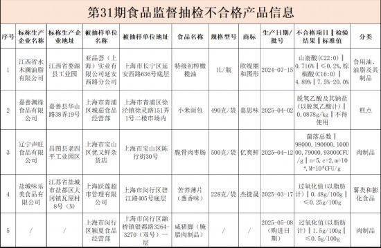 涉及橄欖油、面包 上海抽檢這5批次食品不合格