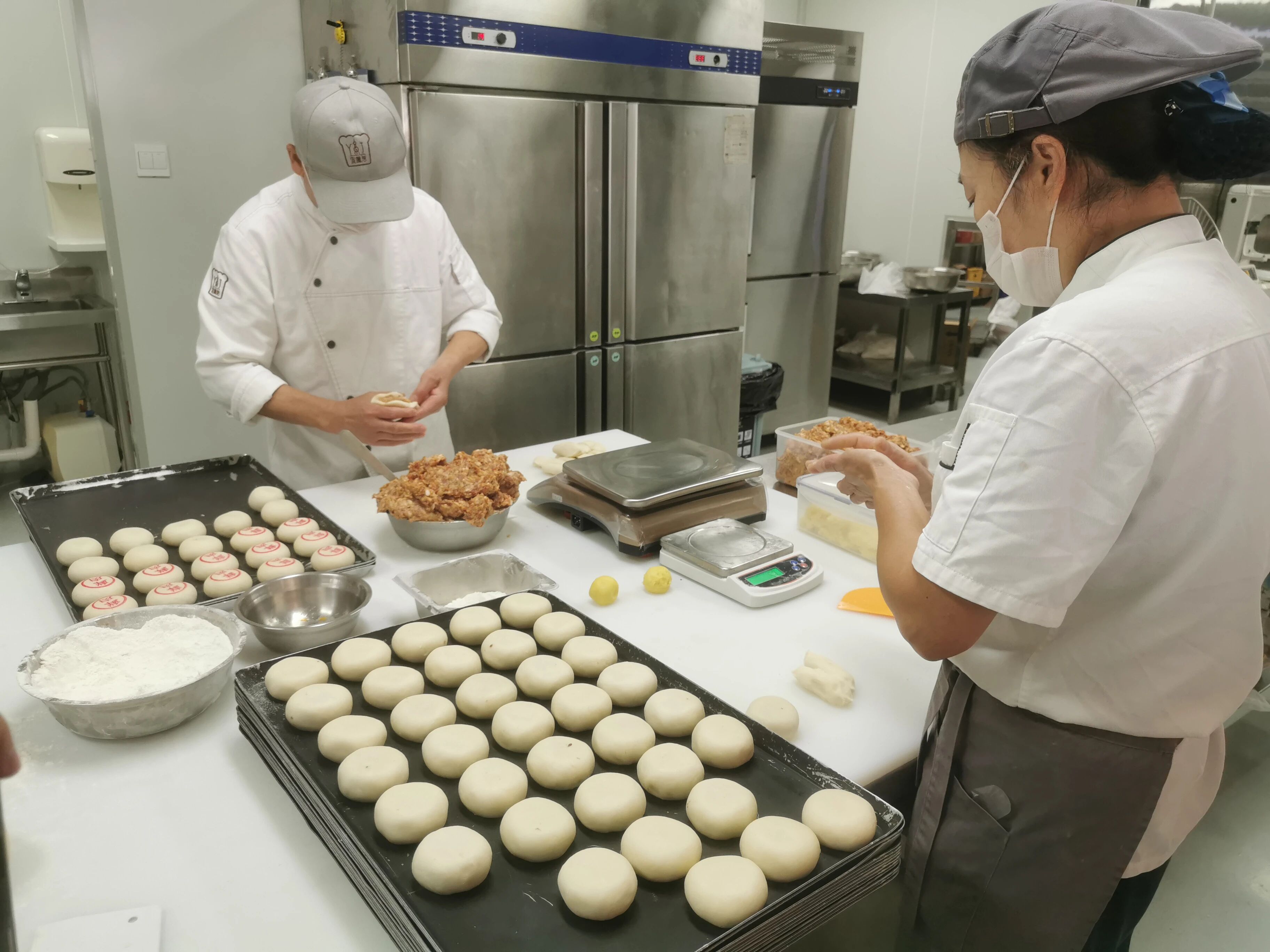 公司負責人介紹,門店師傅傳承原上?;春V新钒倌昀蠌S高橋食品廠的傳統工藝,擁有40多年制作經驗,鮮肉月餅回頭客較多。