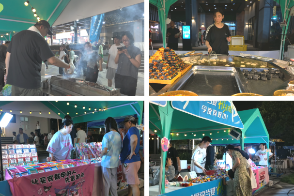 放眼望去,一個個攤位前,攤主們或麻利地打包美食,或笑著招呼詢價的客人,開心的面容與忙碌的身影,構成了市集里最生動的剪影。經營鐵板魷魚攤主剛把一串煎制好的魷魚遞給客戶,用圍裙擦了擦手,笑著說:“我們的食材都是一大早去市場買的新鮮的,我們安心,顧客吃著也放心?!辈贿h處的燒烤攤前,炭火正旺,烤串在鐵架上滋滋冒油,香氣順著晚風飄出老遠。攤主拿著芝麻和辣椒粉撒在肉串上,臉上笑容格外燦爛。