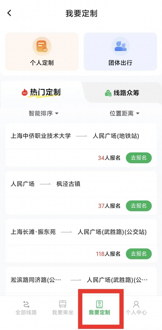 市民可以點擊隨申行APP,APP呈現所有的已經成線的定制公交線路,查找是否有符合需求的線路;如果沒有,市民可以點擊“我要定制”,提交出行需求;也可以撥打4008200022,通過人工座席來提交定制需求。公交企業會根據其他市民響應程度,確定這條定制線路是否成線。