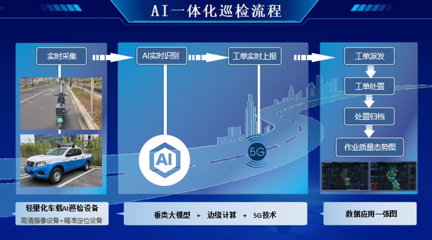 該集團針對環衛、綠化、市政巡檢的痛點,給環衛督察車裝了“智慧眼”——輕量化的智能巡檢AI攝像頭。這個小小的攝像頭可不簡單,它像個敏銳的觀察者,時刻注視著道路上的每一個細節。再搭配上圖像識別、激光雷達這些“黑科技”和垂直領域大模型,環衛督察車化身為能識別30多種問題的“城市道路掃描儀”,就像給馬路請了位“智能體檢員”。