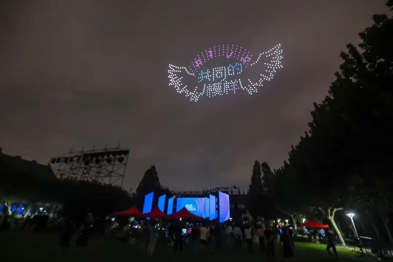 音樂會現場,精心設計的舞臺效果繽紛絢爛,500架無人機以星光為筆、夜空為紙,為現場觀眾奉上一場用科技與青春編織的視覺盛宴。