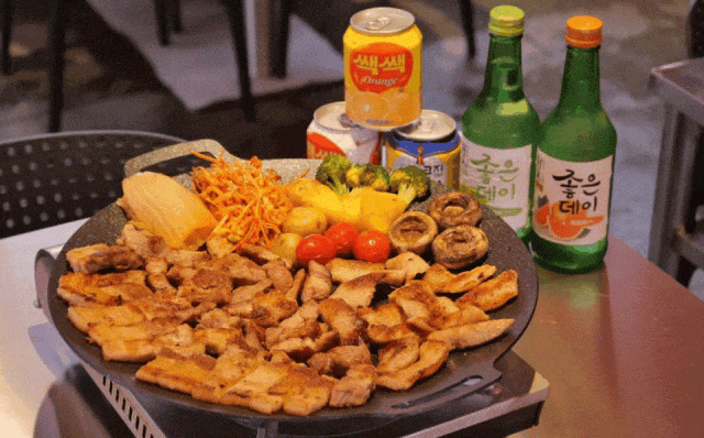 餐飲區里,部隊鍋冒著熱氣、金黃炸雞泛著油光,早早引得食客排起長隊。有人捧著剛出爐的辣炒年糕邊走邊吃,有人圍坐在桌前碰杯喝啤酒;不少人吃到盡興時,會忍不住發出“和韓劇里一樣”的驚嘆。