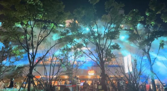 上海國際光影節的璀璨加持,讓西岸的夜晚更添夢幻感——絢爛燈影勾勒出西岸建筑的靈動輪廓,流光溢彩的燈光秀與夜市的熱鬧場景相映成趣。