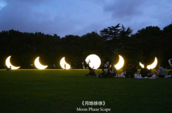 走出樂園,INS新樂園還攜手藝術家在復興公園特別呈現的《月地徐徐》裝置更是必打卡亮點——六組月相燈光裝置沿草坪排布,晚風拂過,市民游客或駐足拍照,或席地休憩,把宇宙浪漫藏進了城市夜晚。