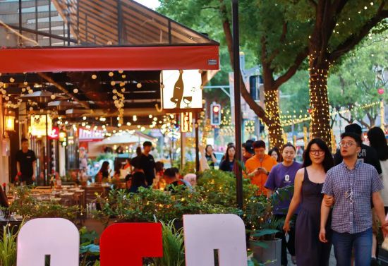 西岸的夜間活力徹底迸發!沿街商戶燈火通明、人氣爆棚——多數商戶延時營業至午夜 24:00,不少熱門餐飲、潮玩商戶更將營業時間拉長至次日凌晨2:00,深夜的美食香氣、逛街歡笑聲交織,煙火氣十足。